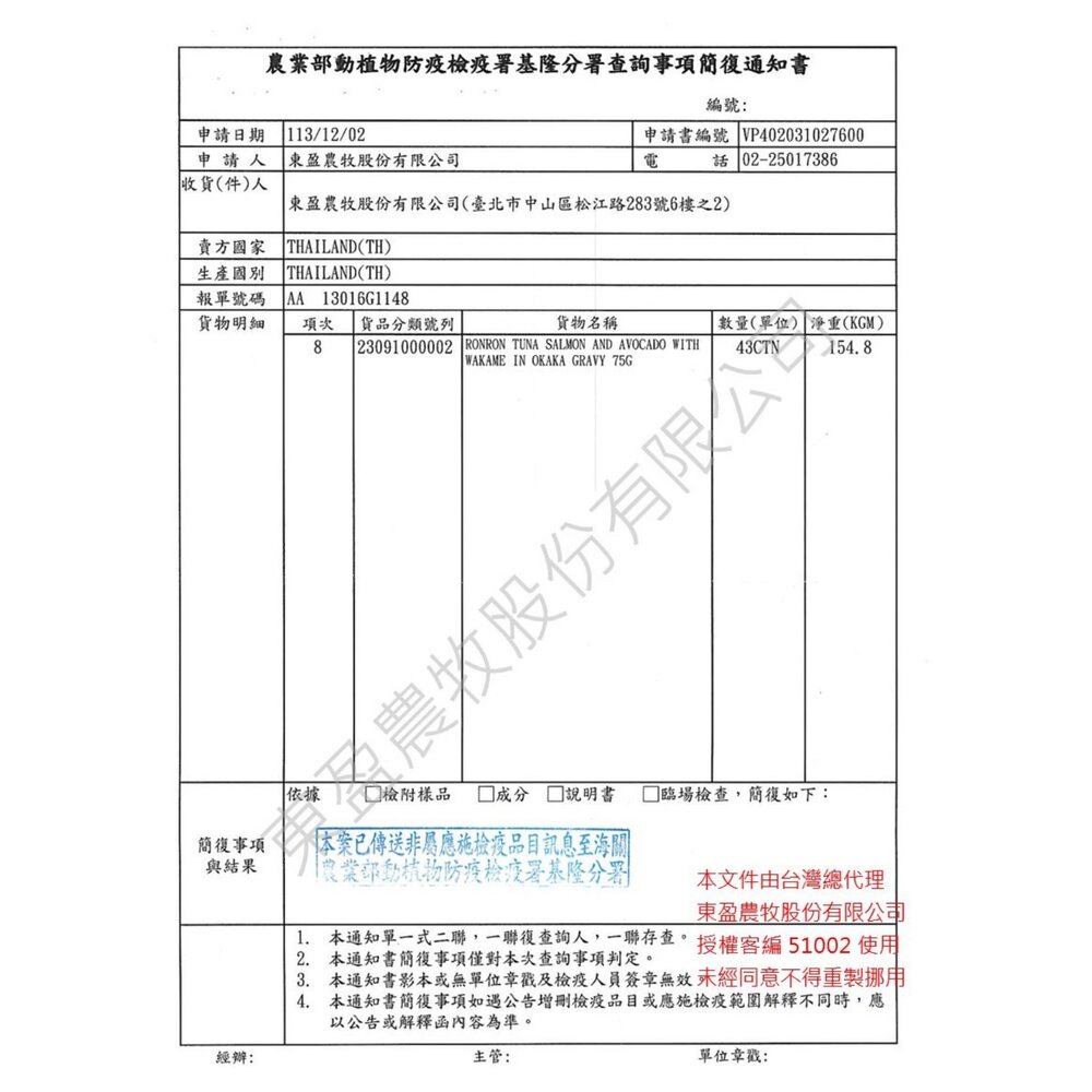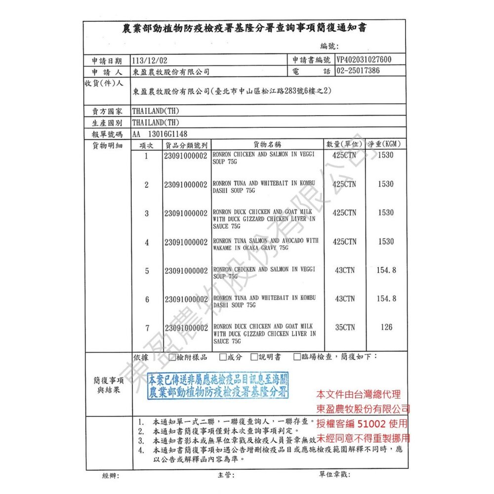 (二) 境外商品不得隨貨贈送應施檢疫物。