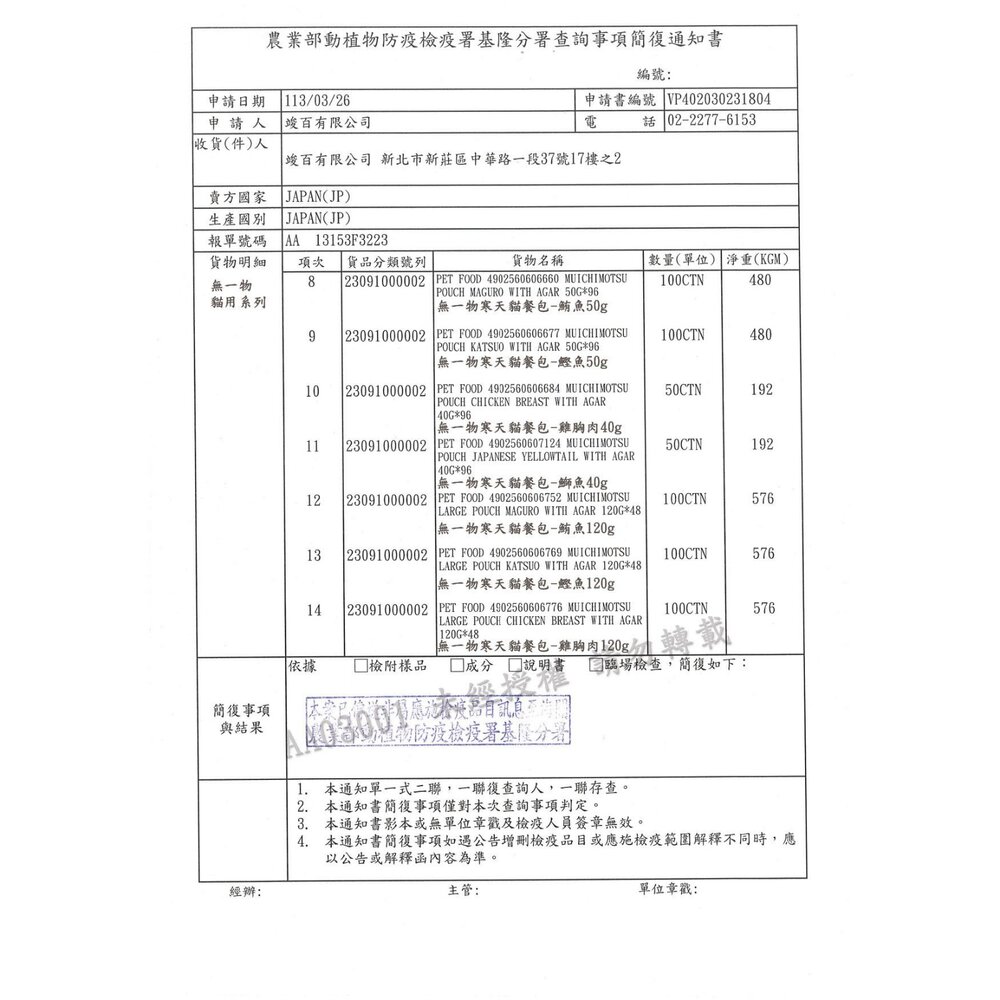 (二) 境外商品不得隨貨贈送應施檢疫物。