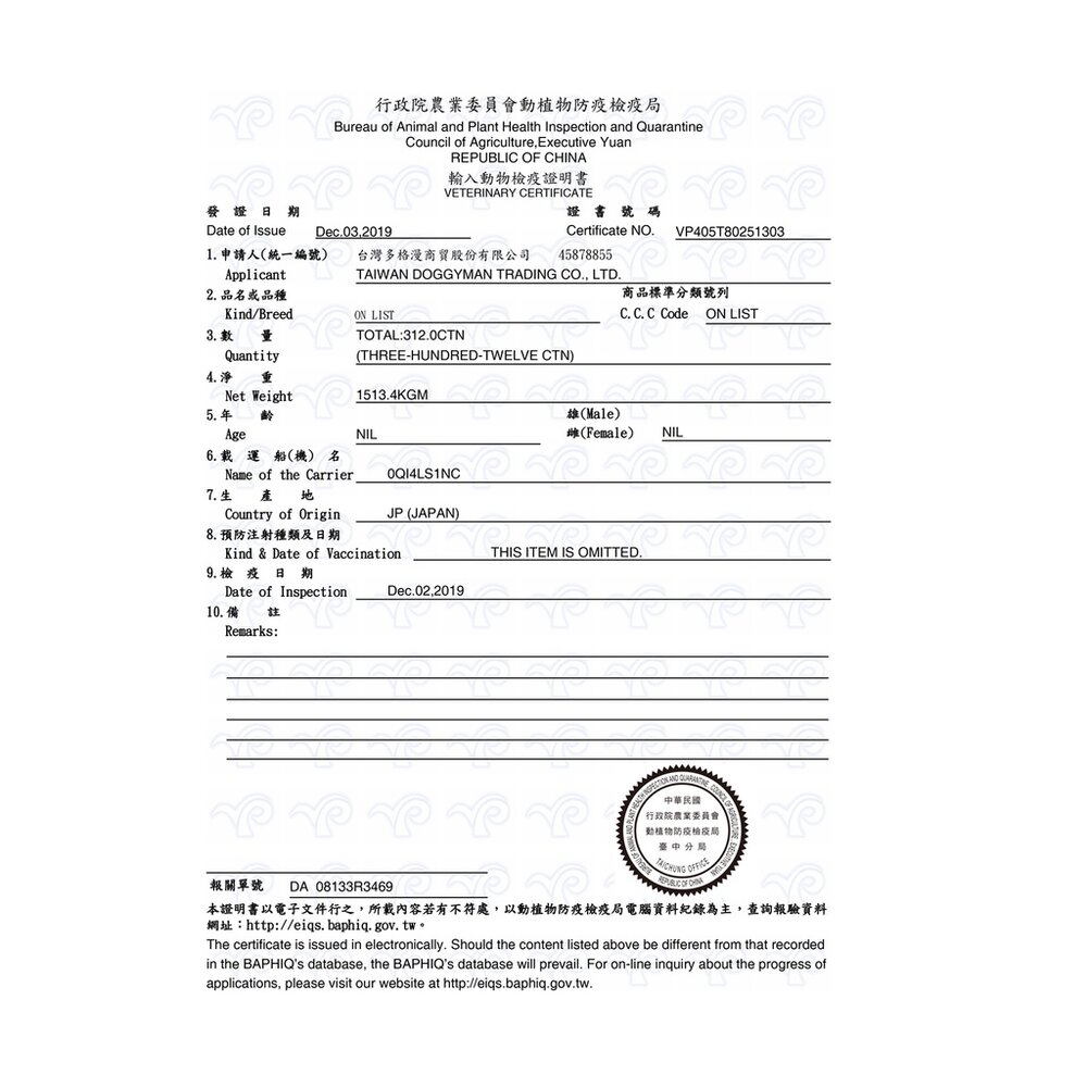 (一) 為防治動物傳染病,境外動物或動物產品等應施檢疫物輸入我國,應符合動物檢疫規定,