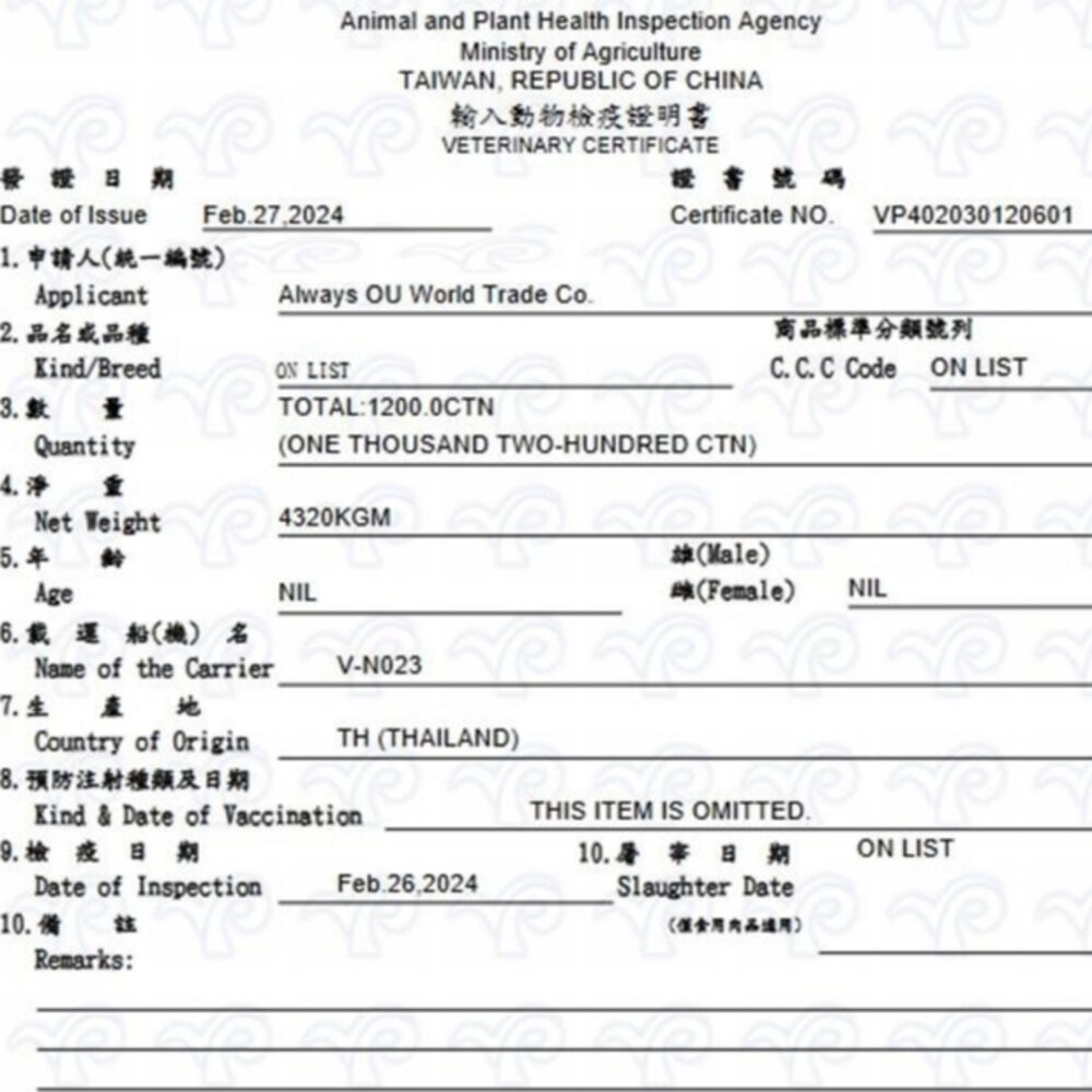 (一) 為防治動物傳染病,境外動物或動物產品等應施檢疫物輸入我國,應符合動物檢疫規定,