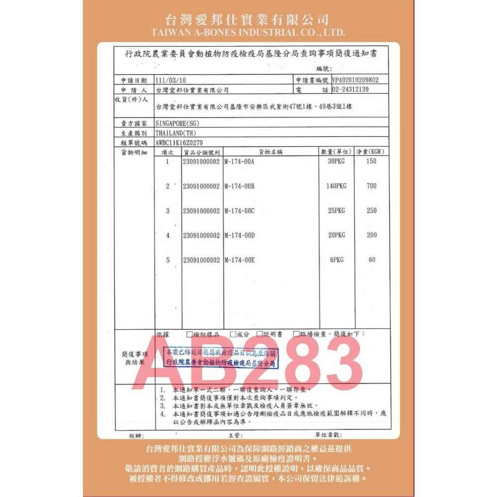 營養標示及含量:粗蛋白質 10%↑,粗脂肪 0.1%↑,粗纖維 3%↓,粗灰分 5%↓,水份 16%↓。