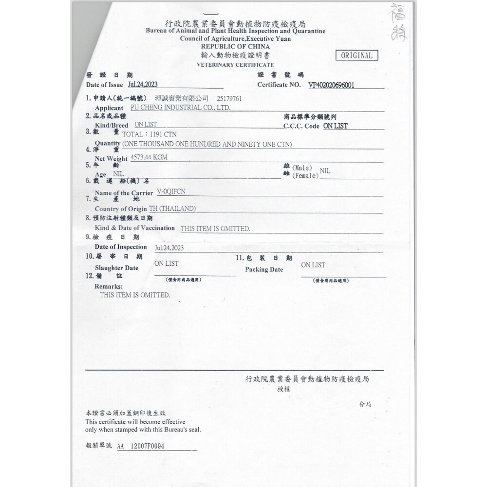 ◆ 營養分析:粗蛋白16.0%以上,粗脂肪0.3%以上,粗纖維0.2%以下,粗灰分2.2%以下,水分81.0%以下