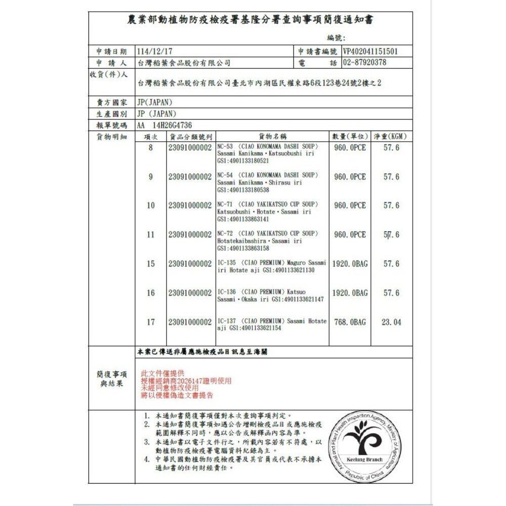 (二) 境外商品不得隨貨贈送應施檢疫物。