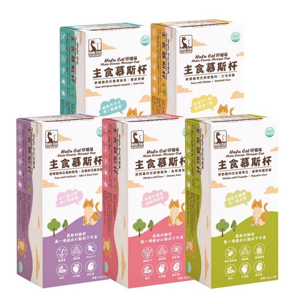 主成份:鮪魚、雞肉、大麥嫩芽粉、果寡糖 (FOS)、維生素D、維生素C、礦物質(鐵、銅)、牛磺酸、寒天