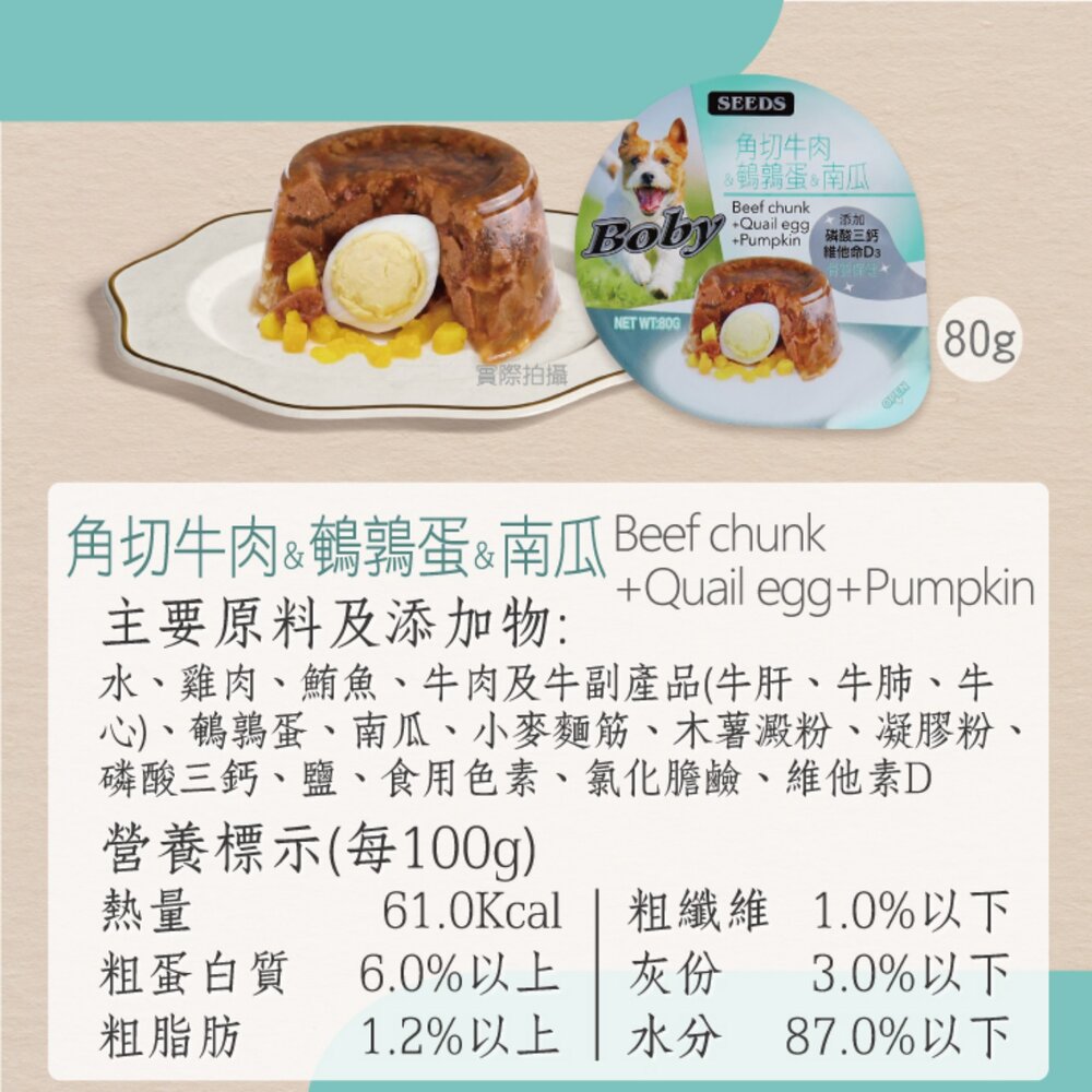 | 角切牛肉+鵪鶉蛋+南瓜 | 現貨 999 件 |