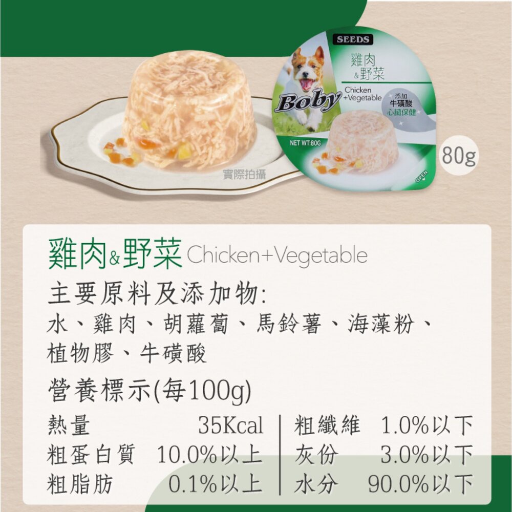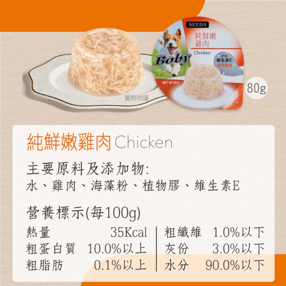 主要原料及添加物:水、雞肉、海藻粉、植物膠、維生素E