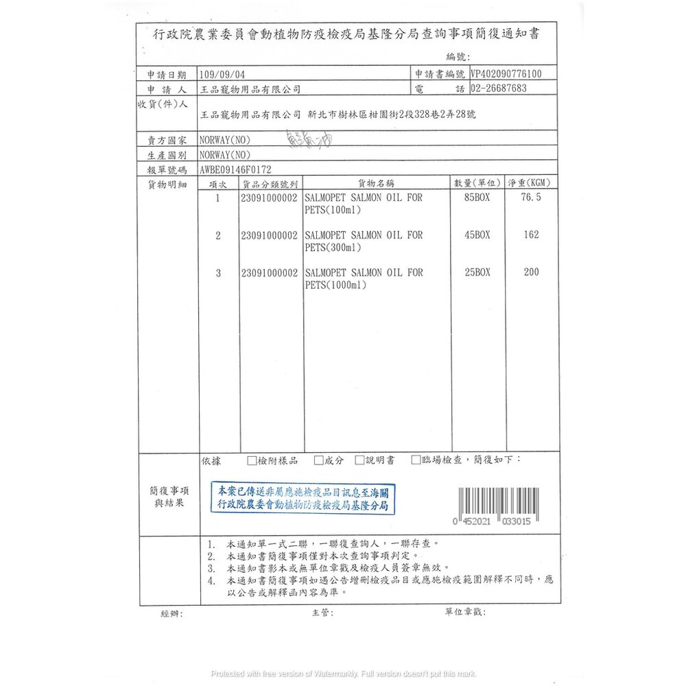 產品名稱 挪威活力寶深海鮭魚油 敘述簡介 100%天然挪威鮭魚製成,含豐富Omega3,可補充貓貓狗狗 每日飲食中所無法足夠攝取的Omega3含量。