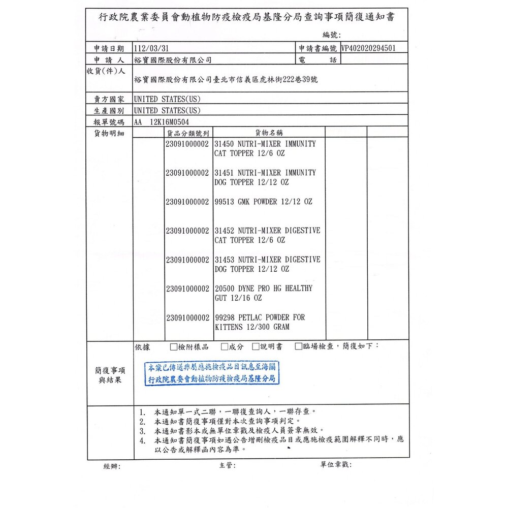 生物素、泛酸鈣、維生素E、酸硫胺素、鹽酸吡哆醇、核黃素補充劑、維生素D3、乾燥乾酪乳菌發酵物、
