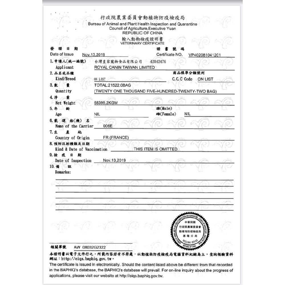 (一) 為防治動物傳染病,境外動物或動物產品等應施檢疫物輸入我國,應符合動物檢疫規定,