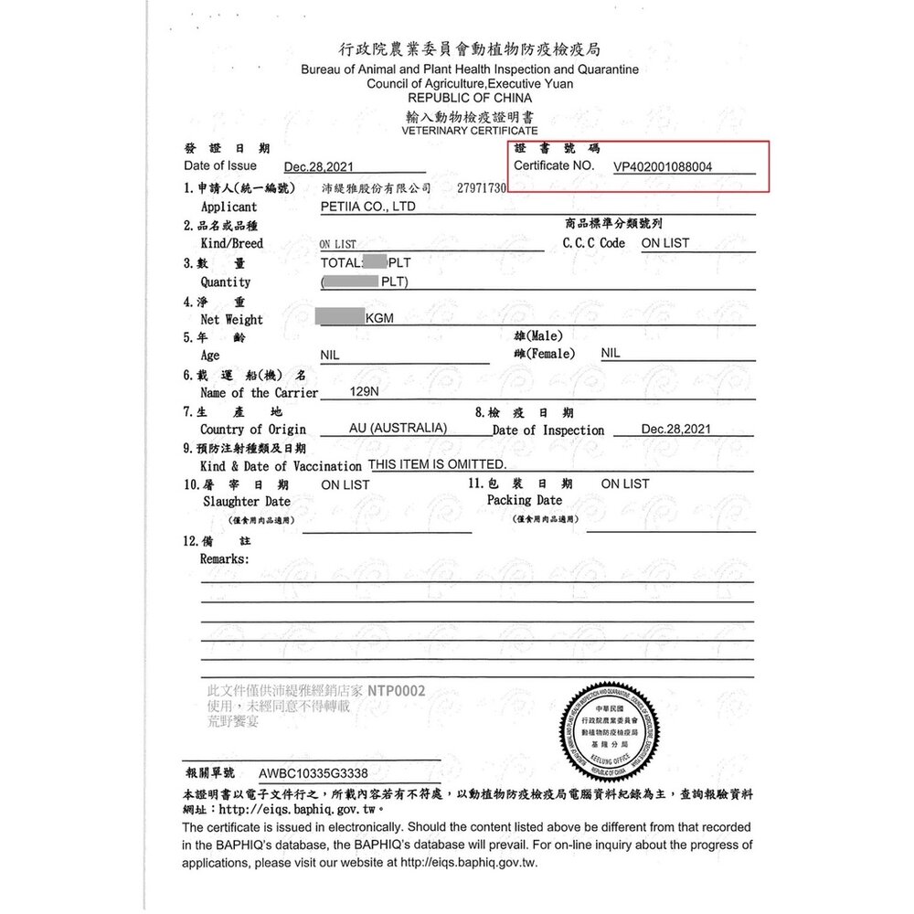 (一) 為防治動物傳染病,境外動物或動物產品等應施檢疫物輸入我國,應符合動物檢疫規定,