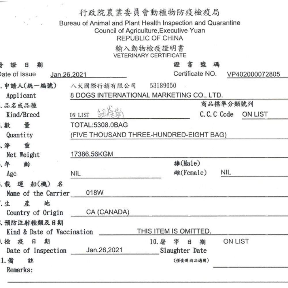 (一) 為防治動物傳染病,境外動物或動物產品等應施檢疫物輸入我國,應符合動物檢疫規定,