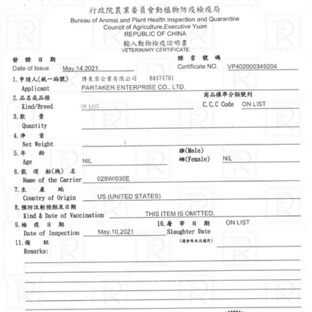 (一) 為防治動物傳染病,境外動物或動物產品等應施檢疫物輸入我國,應符合動物檢疫規定,