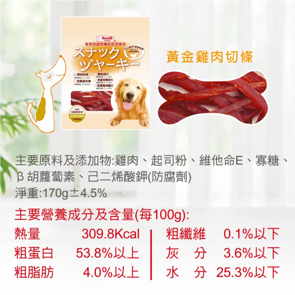 主要成份及添加物: 雞里肌肉、維他命E、寡糖、香料、己二烯酸鉀(防腐劑)