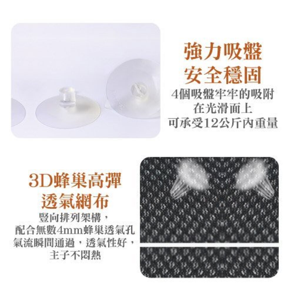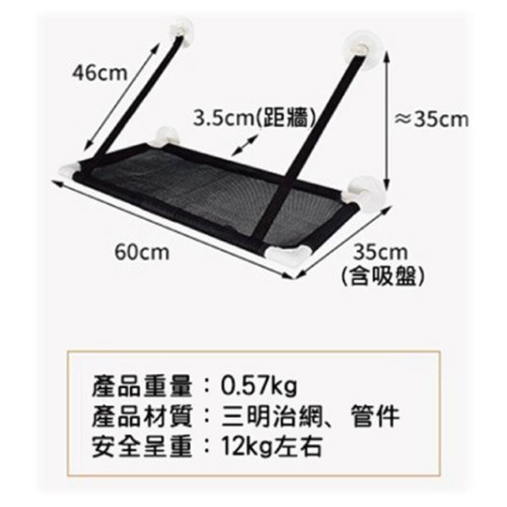 ◆商品名稱◆ 黃金貓 GOLDEN CAT 吸盤式透氣貓吊床 ◆商品描述◆ 強力吸盤 安全穩固 4個吸盤牢牢的吸附在光滑面上 可承受12公斤內重量 3D蜂巢高彈透氣網布豎向排列架構, 配合無數4mm蜂巢透氣孔氣流瞬間通過, 透氣性好,主子不悶熱 ◆商品規格◆ 吸盤式透氣貓吊床 60x35x35 CM 四季方格圓窩(雙面) 尺寸:40x40x12.5cm