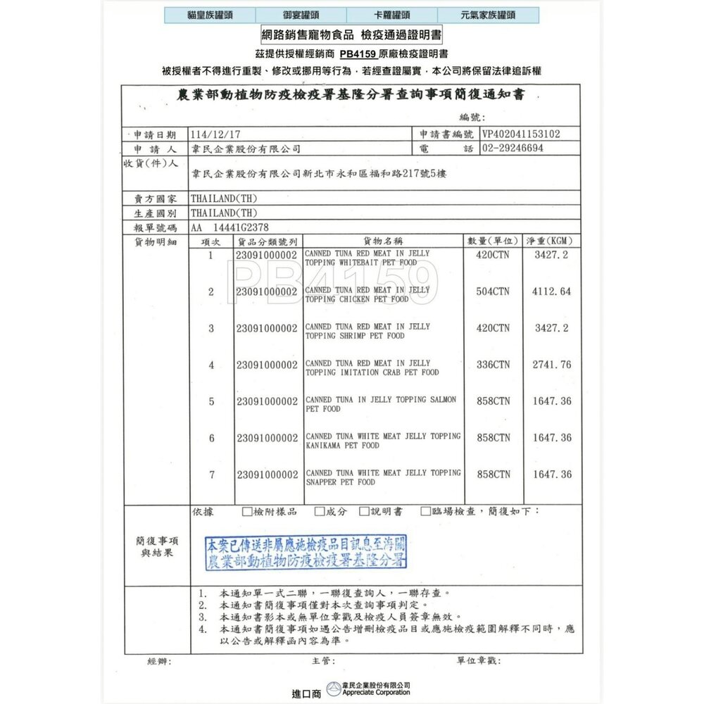 成分: 鮪魚、鮮蝦、水、稠化劑、低聚果糖